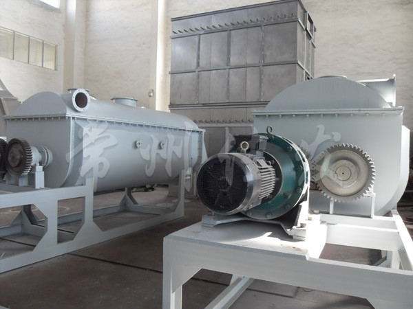 槳葉式干燥器分為熱風(fēng)式和傳熱式。熱風(fēng)式即通過熱載體(如熱空氣)與被干燥有物料相互接觸并進(jìn)行干燥,在傳導(dǎo)式中熱載體并不與被干燥的物料直接接觸,而是熱表面與物料相互接觸。傳導(dǎo)式的優(yōu)點(diǎn)是物料不易被污染,排氣量小,熱效率高,體積相對(duì)小,有利于節(jié)約能源及防止空氣污染。