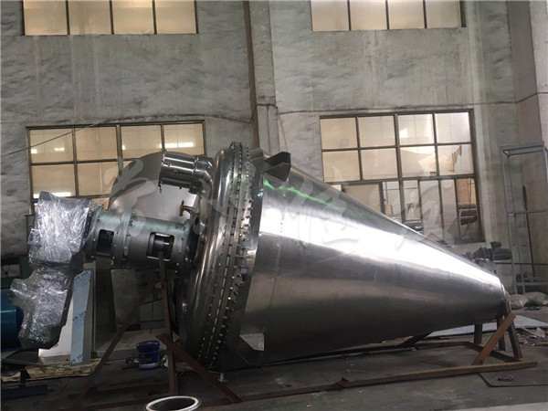 錐形螺帶真空干燥機(jī)是一種利用螺帶將物料旋轉(zhuǎn)提升及圓錐夾套、空心螺帶內(nèi)同時(shí)通入傳熱介質(zhì)(如熱水、導(dǎo)熱油、蒸汽等),使加熱后物料從四周提升并從中間下落,快速不斷的循環(huán)翻轉(zhuǎn),并通過(guò)筒體內(nèi)抽真空將水汽及時(shí)帶走。